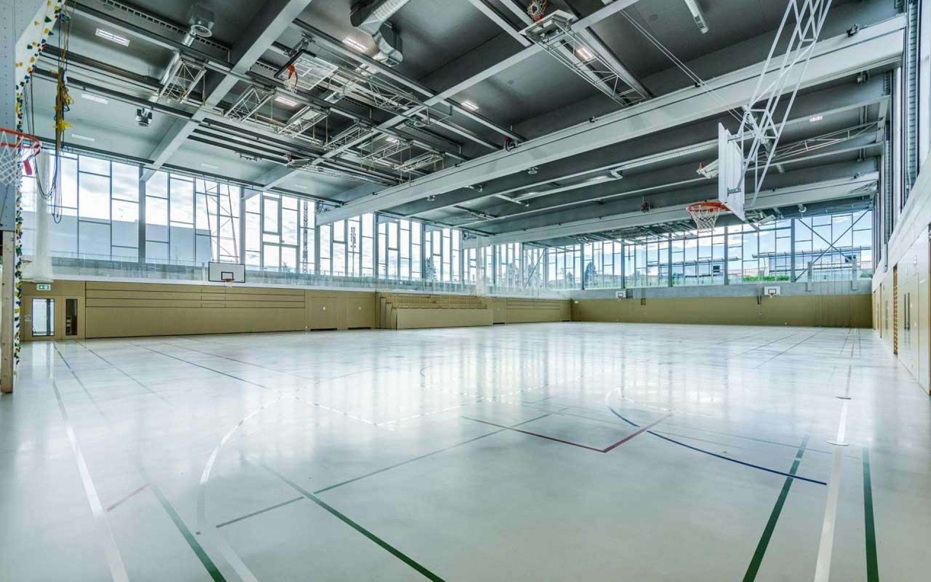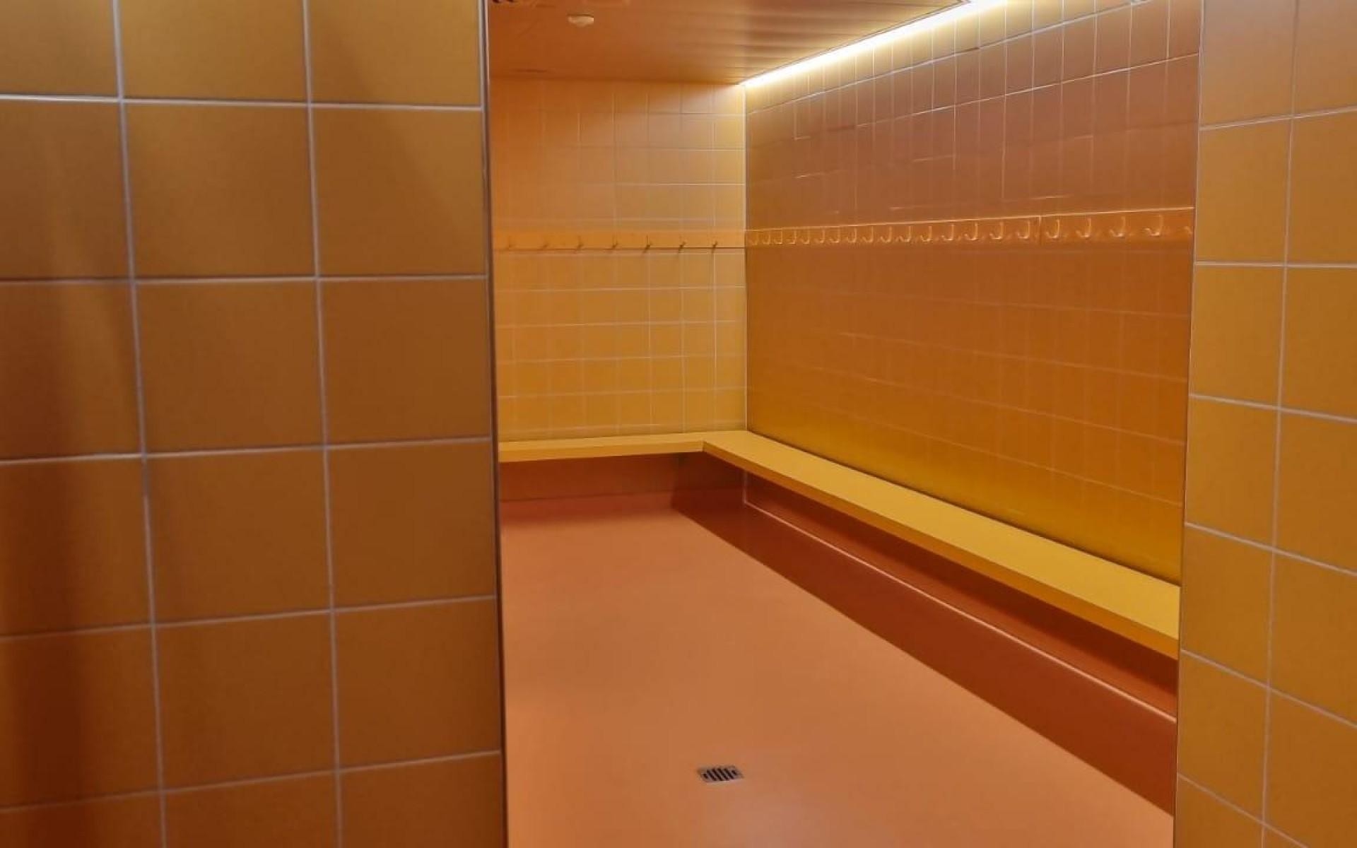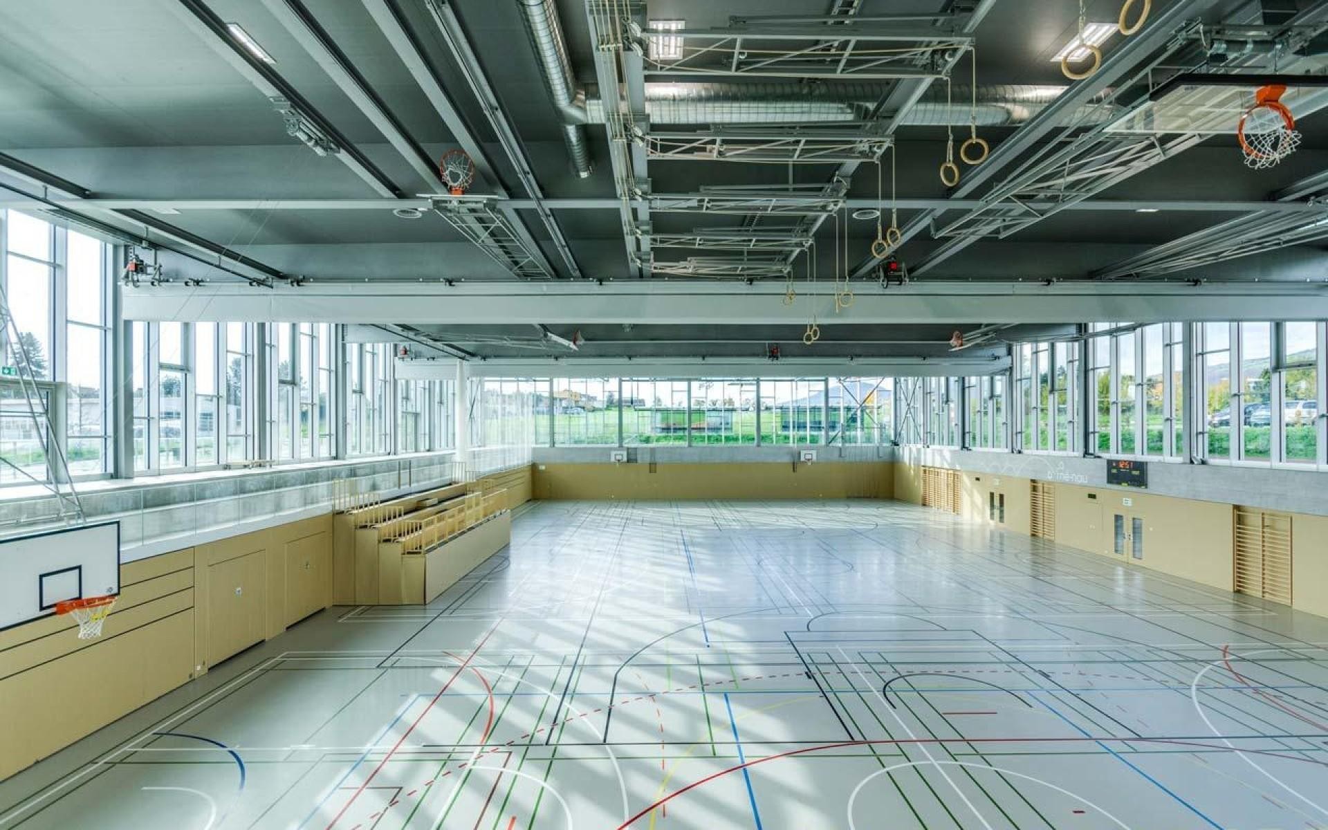 Salle de gymnastique. Chaque salle possède un vestiaire homme et femme. Cette salle n'est pas équipée d'anneaux balançants.